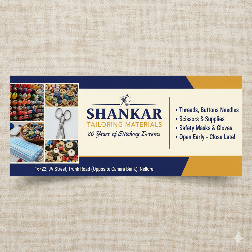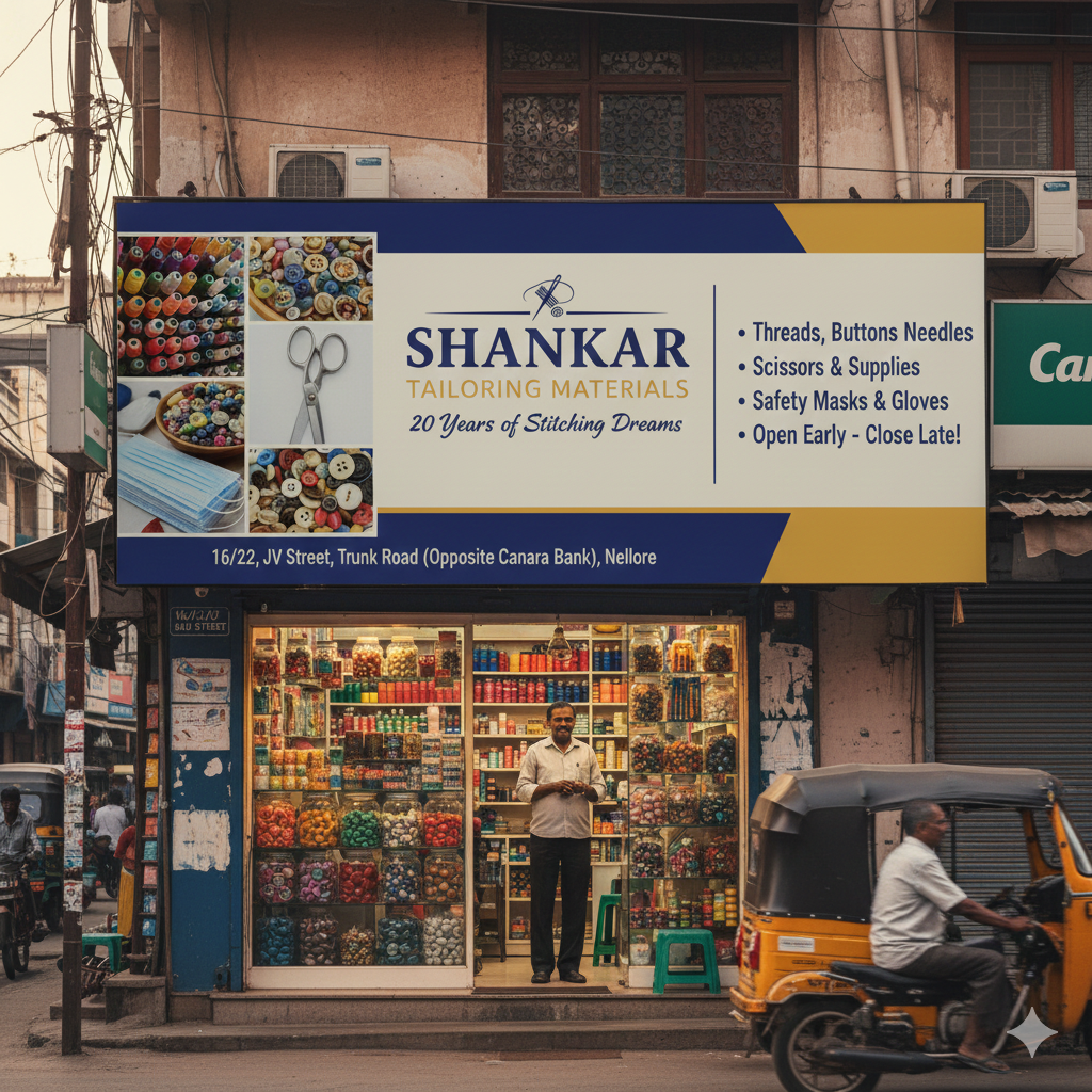 From the perfect button to the sharpest scissors, Shankar Tailoring Materials has been your trusted partner for over two decades. Whether you are a professional boutique owner or a DIY enthusiast, we have everything you need under one roof.
